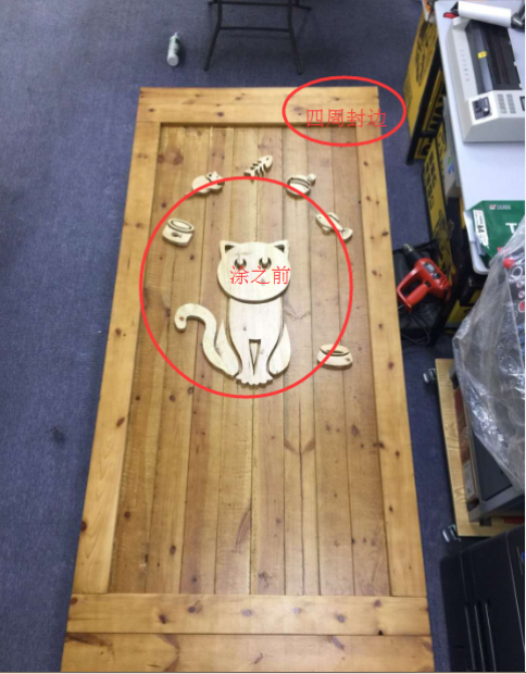 中間晾曬的幾塊板材,是拿來做門周邊封邊解決的,這幾塊板材最佳選色彩與門板一致的,為了節約木料,因此在采辦的時候就要計算好大約有多少塊的板材。