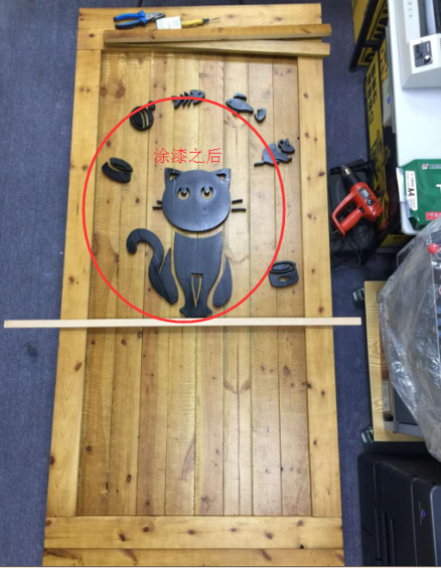 找來一張廢木板,接著籌備好在木板上進行噴漆解決。