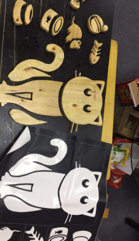 這類粘貼在門上的小飾品,已然被噴漆涂成了彩色,接著再放在上面。