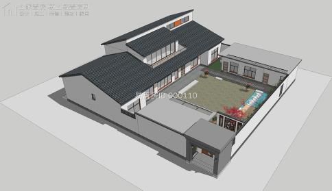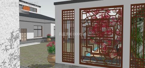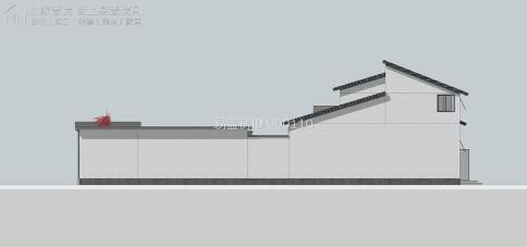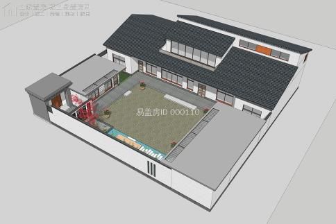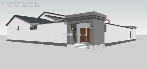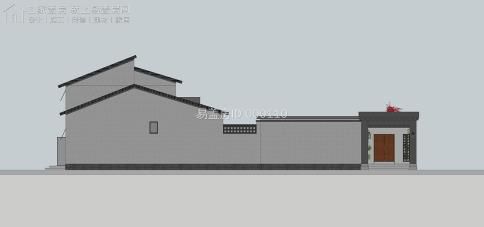 總體建筑利用華夏的傳統四合院布局,除堂屋局部二層之外,其他的仍舊為一層雙坡頂,主通道采取新中式的解決手段,圍墻則是采取紅色墻體加青磚檐口,充足細節;