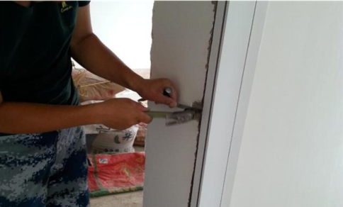 接著再用膨脹螺絲把這類鐵片固定到了墻體里,如此一來,門套就會變得十分堅固。用徒弟的話說,即使想拆都不是如此較易拆下來的,除非將門套給毀壞掉。最終應用發泡劑把門套與墻體之間的裂縫填充上就行了。而其余徒弟在裝載時,不說會用膨脹螺絲了,就連這個鐵片預計都不會用。