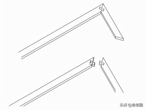 針對傳統的燕尾榫,榫頭與榫槽分別設在2個部件上,一個部件集中設立梯臺榫頭,而另一個部件集中設立與之外形互補的梯臺形榫槽,進而使二者慎密連通。而該榫對傳統燕尾榫構造進行設計改善,2個貫串接部件均分別設有1對梯臺形榫槽和與其外形互補的梯臺形榫頭。成為一類斜角連通節點,此榫用來木門構造用材的斜角連通,可有效以免2個部件在受力時脫開,同時減少加工難度。