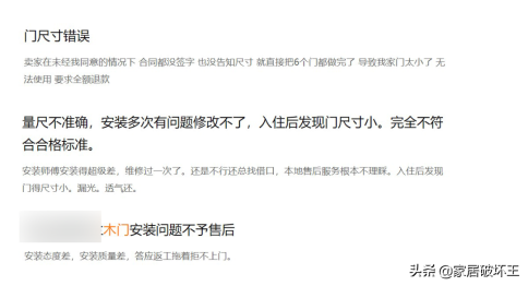 在黑貓投訴中,對于木門的投訴多集中在裝載耽擱、丈量有誤和售后問題不解決這幾方面。
