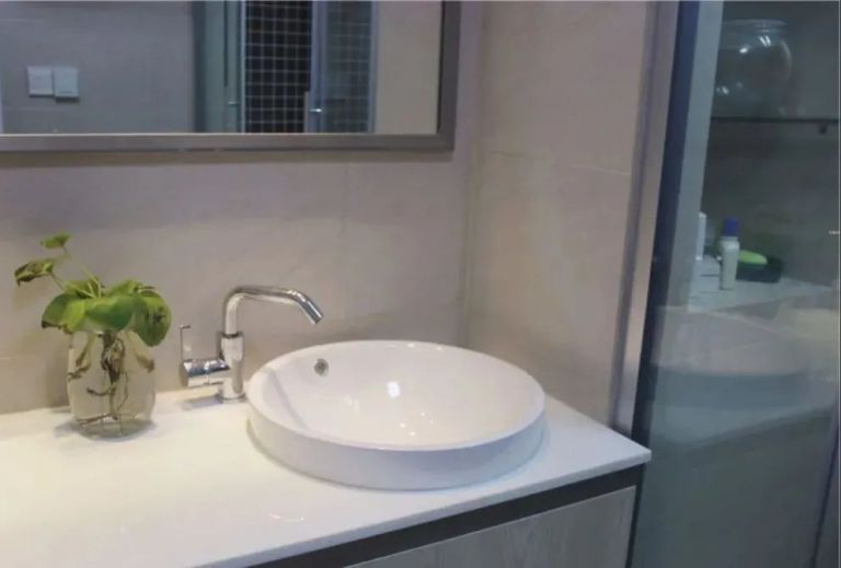 裝修時(shí)選擇懸浮式浴室柜,可以大大避免灰塵、霉菌的堆積。同時(shí)最好安裝臺(tái)下盆,臺(tái)盆與臺(tái)面無(wú)縫對(duì)接,沒(méi)有衛(wèi)生死角,不易堆積水垢、霉菌。